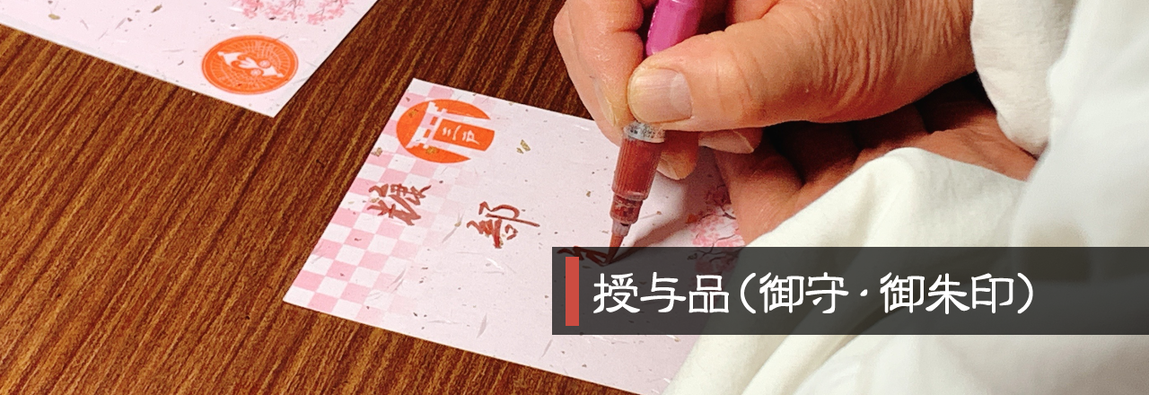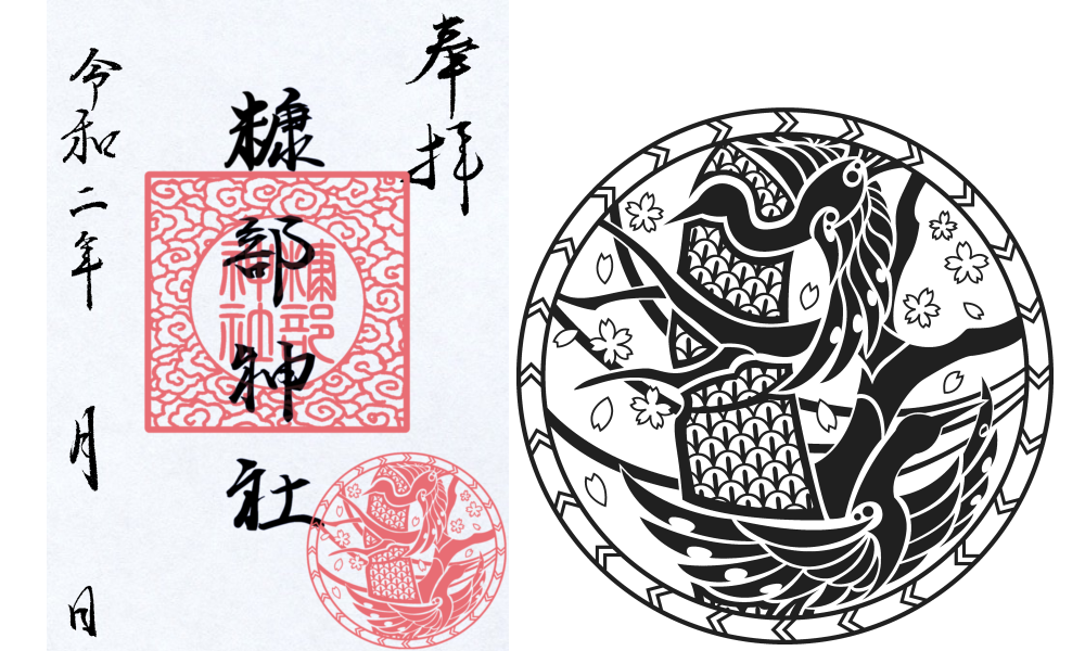 境内のシンボルである松生桜と南部藩の定紋「向鶴」をアレンジした、トライバルデザイン。この他、祈年祭、例大祭、新嘗祭、月次祭、正月期限定で5種類の印があります。