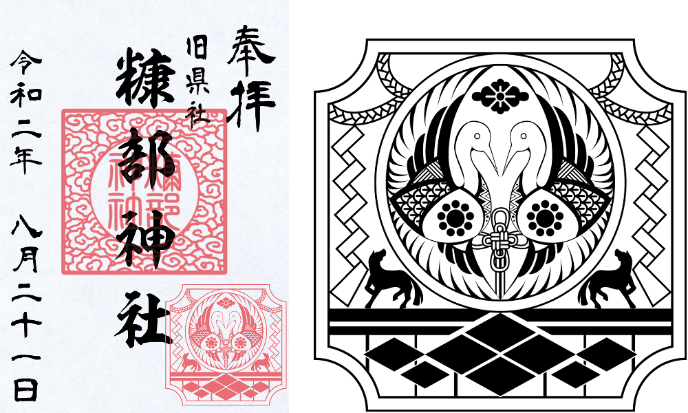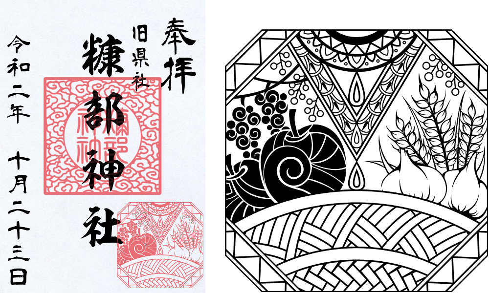 南国を彷彿させるデザインでありながら、当神社をはじめとする青森・三戸の風土のイメージを損なうことなく、巧みに判子へ落とし込まれています。
